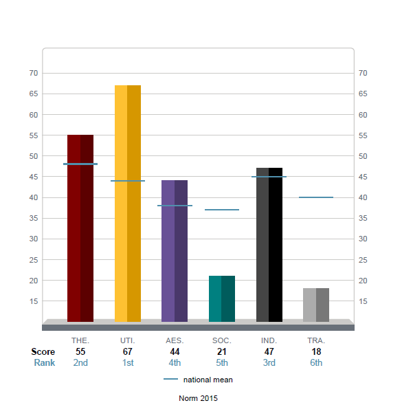 Mine: Theoretical 55 | Utilitarian 67 | Aesthetic 44 | Social 21 | Individualistic 47 | Traditional 18